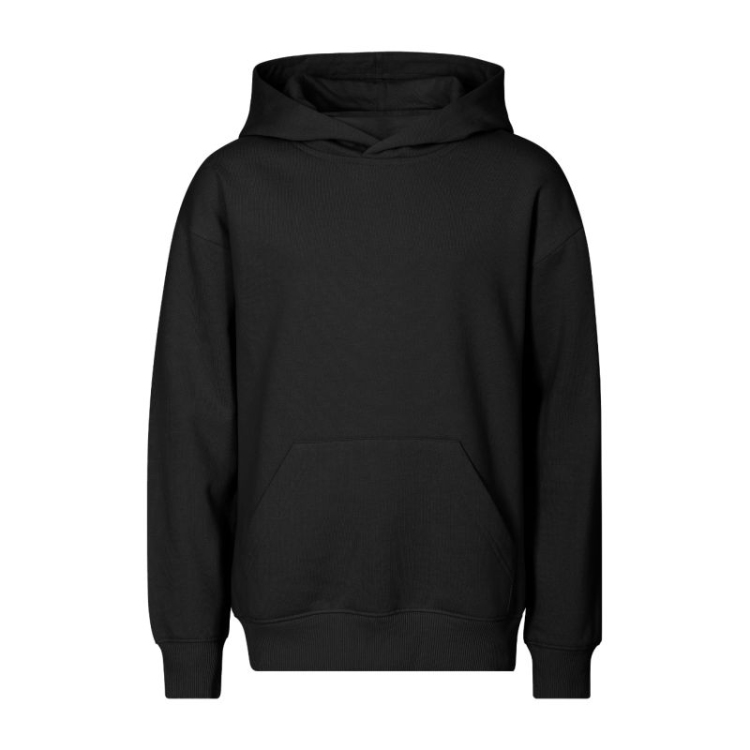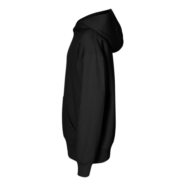 Frotē, ķemmēta iekšpuse, 60% kokvilna, 40% poliesters (sastāvs var atšķirties - krāsa 12 - 75% kokvilna, 25% poliesters) bez etiķetes - gatavs zīmola maiņai, brīvs piegriezums ar sānu vīlēm, oderēta kapuce, etiķete aizmugurējā apakšmalā neitrālā izmērā, iekšējā muguras apakšmala pastiprināta ar lenti, pagarināta plecu līnija, ķengura kabata, apakšējā apakšmala un piedurkņu aproces izgatavotas no 2:2 rievota adījuma ar 5% elastānu, ķemmētas iekšpuse.