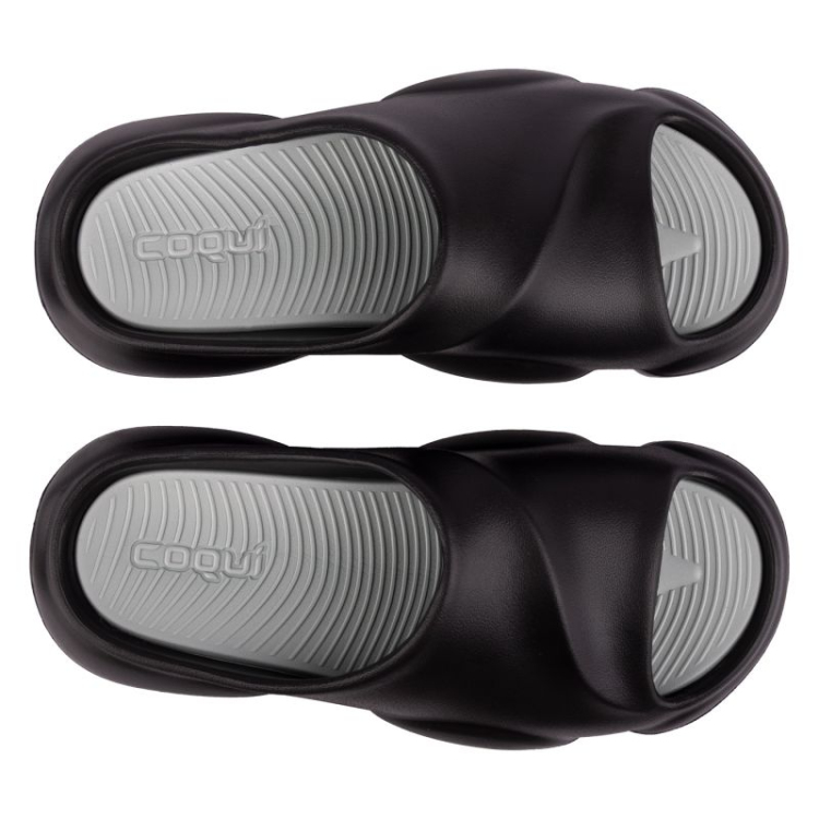 CoquiAir materiāls (augstākās klases EVA materiāli) Amortizācija Antibakteriāla virsma Neslīdoša un neatstāj pēdas zole Futūristisks dizains Plata siksna Viegls un viegli tīrāms materiāls