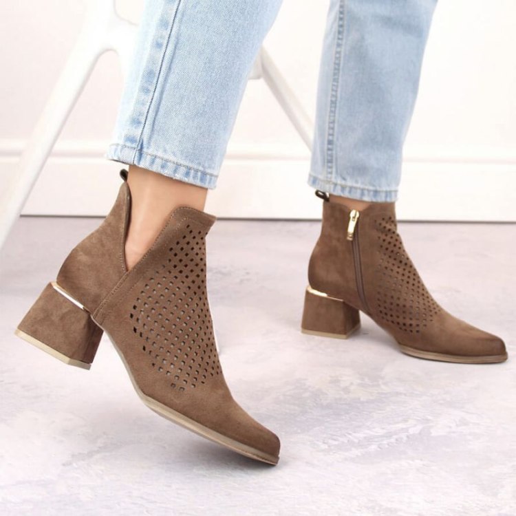 Potocki W WOL213B zamšādas augstpapēžu puszābaki, brūni