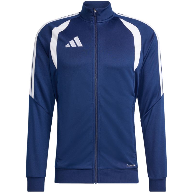 adidas Tiro 26 League Training vīriešu sporta krekls tumši zils JY7205. Šis adidas futbola sporta krekls vīriešiem ir ideāli piemērots treniņiem. Stāvkakla apkakle. Pilna garuma rāvējslēdzējs. Pieguļošs piegriezums. Climacoool tehnoloģija absorbē un novada mitrumu. Tīklveida krūšu paneļi. Sānu kabatas ar rāvējslēdzējiem. Zoda aizsargs. Svītrainas piedurknes. Neuzkrītošs logotips. Pārstrādātas šķiedras. Materiāls: 100% pārstrādāts poliesters.