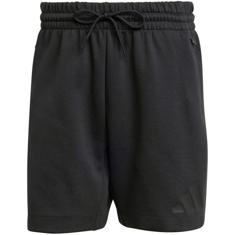 adidas ZNE vīriešu šorti, melni, JE7540. Sportiski adidas šorti aktīviem vīriešiem, kuri novērtē funkcionalitāti un sportisku garu. Standarta piegriezums. Elastīga jostasvieta ar aukliņu. Vidēji augsts jostasvietas augstums. Priekšējās kabatas ar rāvējslēdzējiem. Trīsslāņu audums. Dizains ar gumijotiem akcentiem. Materiāls: 57% pārstrādāts poliesters, 43% kokvilna.
