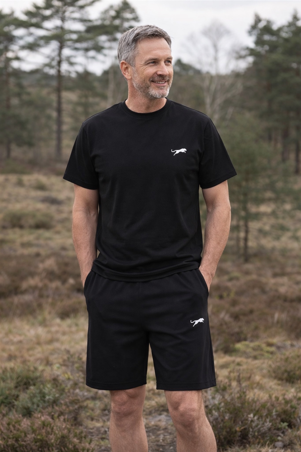 • Vīriešu sporta komplekts Jaguar, kas sastāv no šortiem un T-krekla.