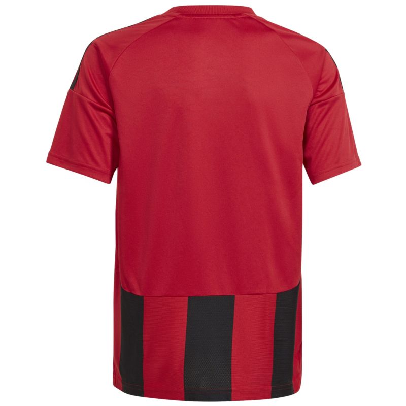 Adidas Striped 24 bērnu T-krekls, sarkanmelns, IW2131, nodrošinās jūsu bērna komfortu katrā spēlē un skolas turnīrā. Žāvējošais audums ar Aeroready tehnoloģiju ātri novada mitrumu. Tam ir standarta piegriezums ar īsām piedurknēm. Izvēloties adidas T-kreklu, kas izgatavots no pārstrādāta poliestera, jūs atbalstāt vidi un tās resursus. Atvērtās vietas uz krūtīm, muguras un piedurknēm ļauj uzrakstīt bērna vārdu, numuru un komandas nosaukumu. Materiāls: 100% pārstrādāts poliesters.