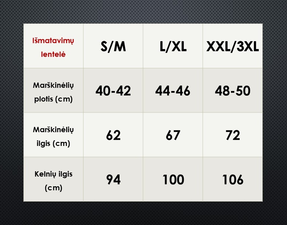 Šī prece ir regulāra izmēra, un izmēri atbilst precīzi. Tāpēc 99.3% pircēju izvēlas pareizo izmēru jau no pirmās reizes. Ja gadījumā izmērs tomēr nederēs, Jums būs iespēja bez maksas to apmainīt pret citu izmēru vai saņemt naudu atpakaļ kontā. Tātad Jums nav nekādu risku.